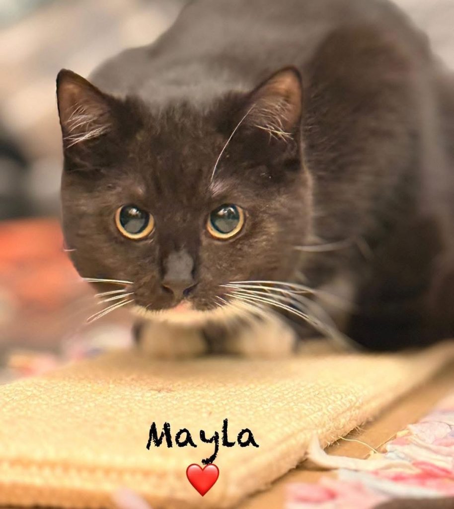 Auch Mayla hat sich perfekt in die Katzengruppe der Pflegefamilie integriert, akzeptiert Hunde, liebt es zu spielen und für Snacks würde sie fast alles tun. 🙂